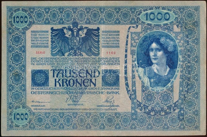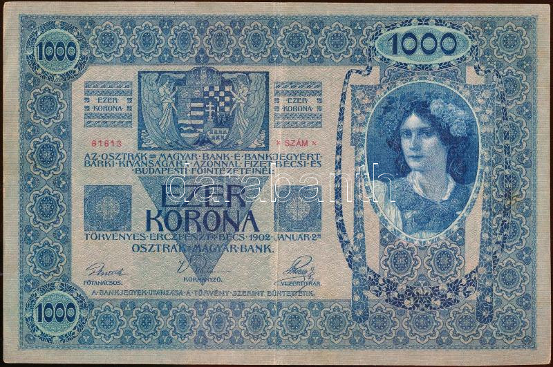 1902. 1000K főtípus T:III https://www.darabanth.com/de/178-Fernauktion/178.0/Numismatik/Ungarische-banknoten~600144/1902-1000K-fotipus-TIII~II625653