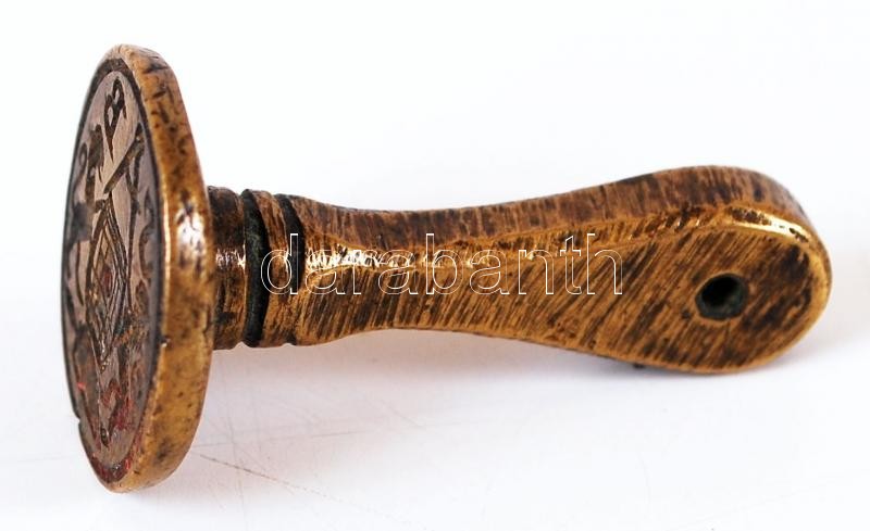Beschreibung: Családi címeres bronz pecsétnyomó SB monogrammal. / Bronze seal-maker 4 cm