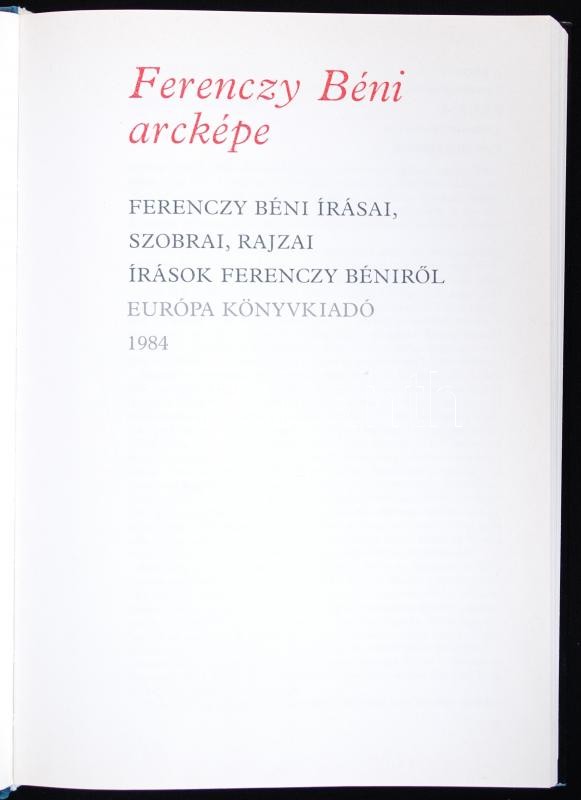 Ferenczy Béni arcképe. Ferenczy Béni írásai, szobrai, rajzai. Írások F... https://www.darabanth.com/de/179-Fernauktion/179.0/Andere-Sammelgebiete/Bucher-Architektur-Kunst~400026/Ferenczy-Beni-arckepe-Ferenczy-Beni-irasai-szobrai-rajzai-Irasok-Ferenczy-Benirol-Szer~II632207
