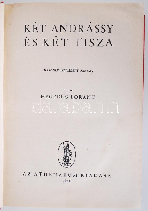 Hegedűs Lóránt: Két Andrássy és két Tisza. Budapest 1941. Athenaeum. E... https://www.darabanth.com/de/179-Fernauktion/179.0/Andere-Sammelgebiete/Bucher-Geschichte~400029/Hegedus-Lorant-Ket-Andrassy-es-ket-Tisza-Budapest-1941-Athenaeum-Ex-Librisszel-Szmrecsa~II632170