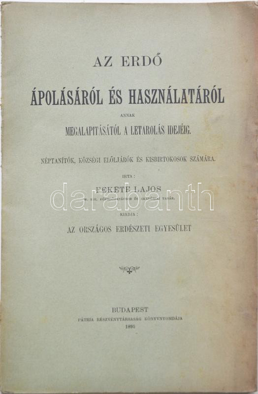 Fekete Lajos: Az erdő ápolásáról és használatáról. Bp., 1895 Orsz. Erd... https://www.darabanth.com/de/179-Fernauktion/179.0/Andere-Sammelgebiete/Bucher-Kuche-und-Garten~400017/Fekete-Lajos-Az-erdo-apolasarol-es-hasznalatarol-Bp-1895-Orsz-Erdeszeti-Egyesulet-PC3~II636868