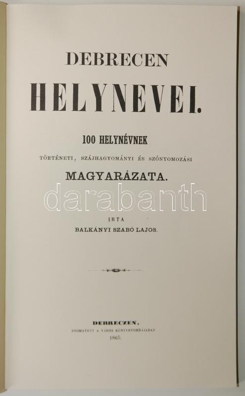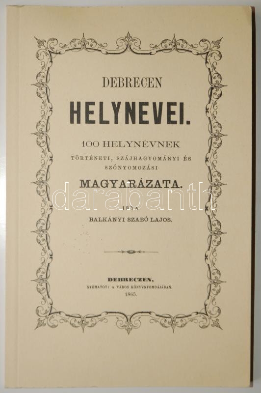 Beschreibung: Balkányi Szabó Lajos: Debrecen helynevei. Debreczen, 1865. Reprint