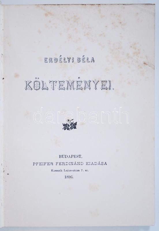 Erélyi Béla: Költemények. Dedikált! Bp., 1896 Pfeiffer Ferdinánd. Fest... https://www.darabanth.com/de/179-Fernauktion/179.0/Andere-Sammelgebiete/Bucher-Sonstige-Raritaten~400037/Erelyi-Bela-Koltemenyek-Dedikalt-Bp-1896-Pfeiffer-Ferdinand-Festett-aranyozott-egeszvC3~II635729