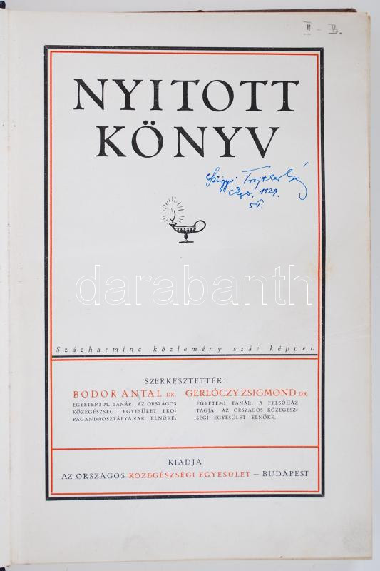 Nyitott könyv. Százharminc közlemény száz képpel. Szerk. dr. Bodor Antal - dr. Gerlóczy Zsigmond. Bp., 1928, Országos Közegészségügyi Egyesület. Kiadói félvászon kötésben, illusztrálva, jó állapotban