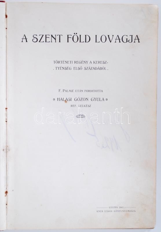 Beschreibung: Palmié-Gózon: A szent föld lovagja. Gyoma 1903. Kner Izidor Könyvnyomdája.