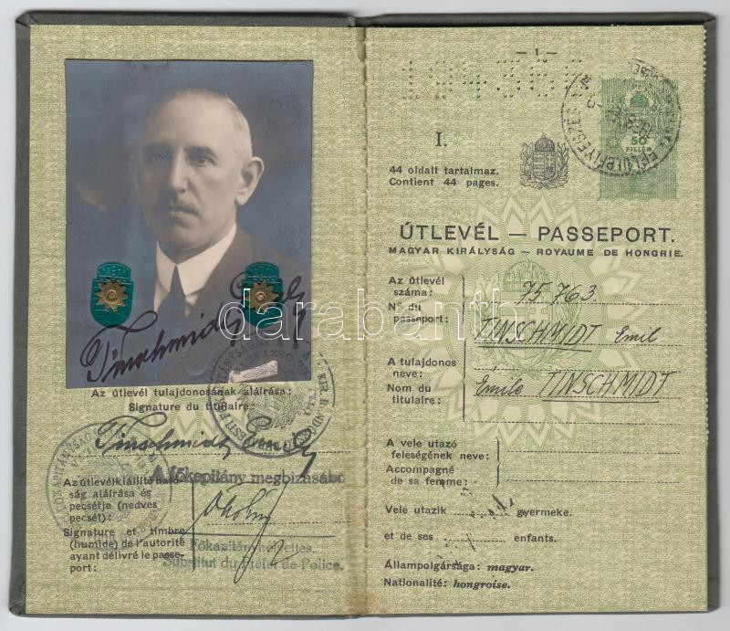 1939 Keményfedeles útlevél / Hungarian passport https://www.darabanth.com/de/179-Fernauktion/179.0/Andere-Sammelgebiete/Dokument~400021/1939-Kemenyfedeles-utlevel--Hungarian-passport~II630724