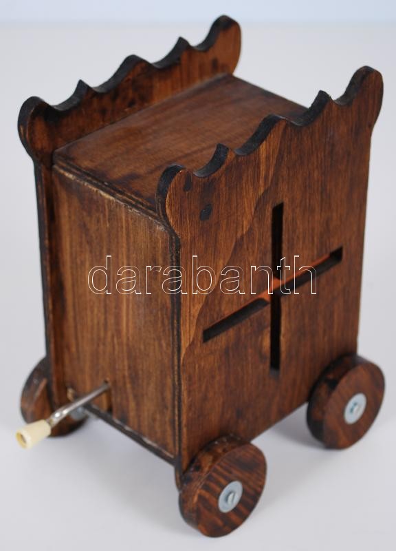 Beschreibung: Cca 1970 Sváci eredetű mechanikus kerekes zenegép, működő képes,m: 17 cm, h:12 cm
