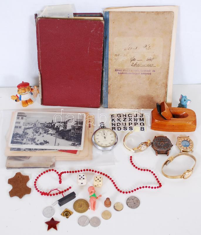Kis doboz vegyes tétel: órák, képeslapok, emlékkönyv 1937-ből, tanári ... https://www.darabanth.com/de/179-Fernauktion/179.0/Andere-Sammelgebiete/Flohmarkt~400016/Kis-doboz-vegyes-tetel-orak-kepeslapok-emlekkonyv-1937-bol-tanari-fizetesi-konyv-1907-~II630128
