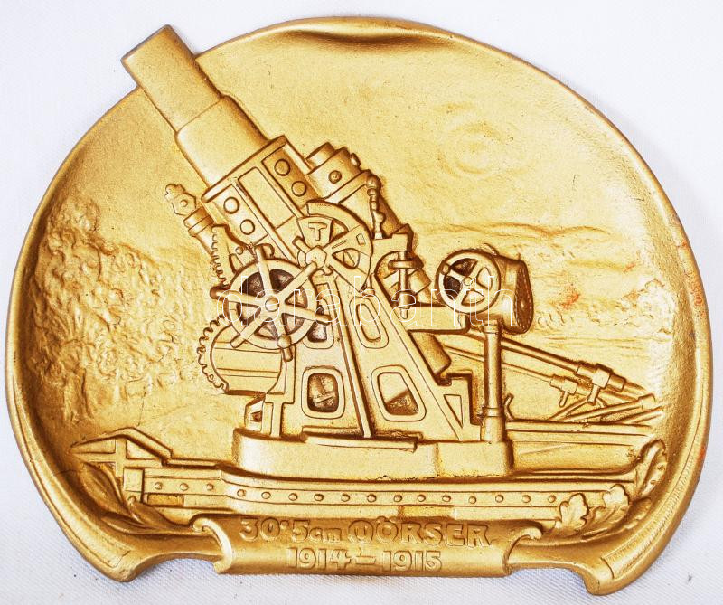 cca 1915 30'5cm Mörser - System Skodawerke A.G. Pilsen, domborműves, bronzírozott fém tál, az I. világháború hírneves mozsárágyújáról /