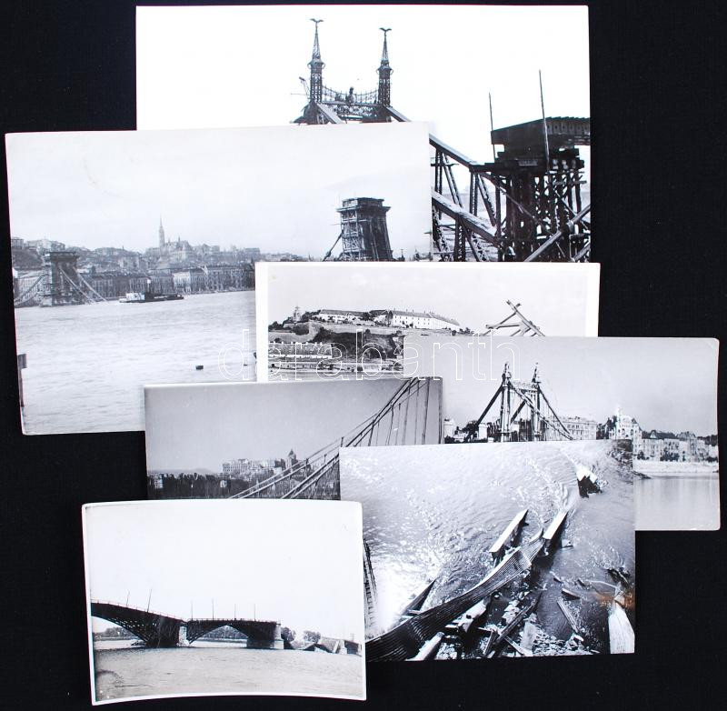 Beschreibung: 7 db fotó a felrobbantott budapesti hhidakról + a péterváradi híd