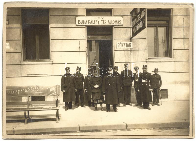 Cca 1920 Buda Pálffy-tér HÉV állomás az ott dolgozókkal, kemény hátú f... https://www.darabanth.com/de/179-Fernauktion/179.0/Andere-Sammelgebiete/Foto~400025/Cca-1920-Buda-Palffy-ter-HEV-allomas-az-ott-dolgozokkal-kemeny-hatu-foto-13C39717-cm~II629849