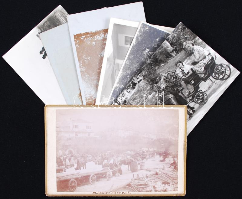 Beschreibung: cca 1900-1910 Hintók, szekerek 9 db fotó és fotólap