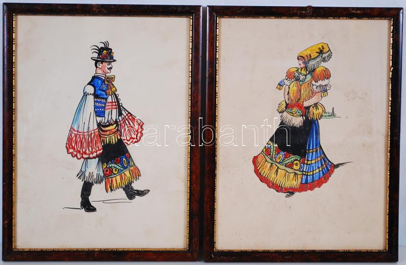 Jelzés nélkül: Népviseletes férfi és nő. Vegyes technika, papír, üvege... https://www.darabanth.com/de/179-Fernauktion/179.0/Andere-Sammelgebiete/Gemalde-und-Grafiken~400043/Jelzes-nelkul-Nepviseletes-ferfi-es-no-Vegyes-technika-papir-uvegezett-keretben-2db-3~II632450