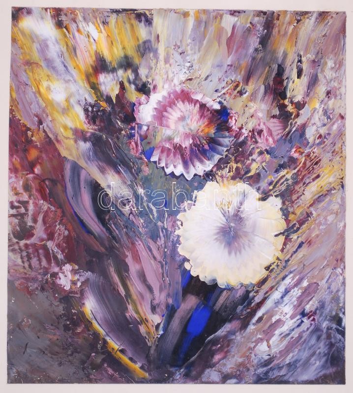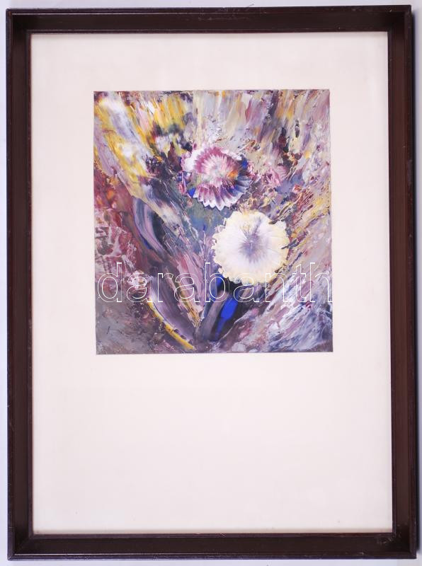Beschreibung: Körtvélyesi Magdolna (1919-2007): Virág csendélet. olaj-karton, jelzés nélkül, üvegezett keretben 45×33 cm