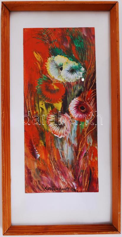 Beschreibung: Körtvélyesi Magdolna (1919-2007): Virág csendélet. olaj-karton, jelzett, üvegezett keretben 40×20 cm