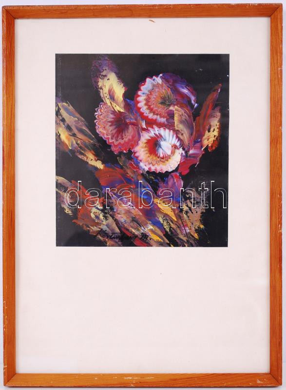 Beschreibung: Körtvélyesi Magdolna (1919-2007): Virág csendélet. olaj-karton, jelzett, üvegezett keretben 43×32 cm