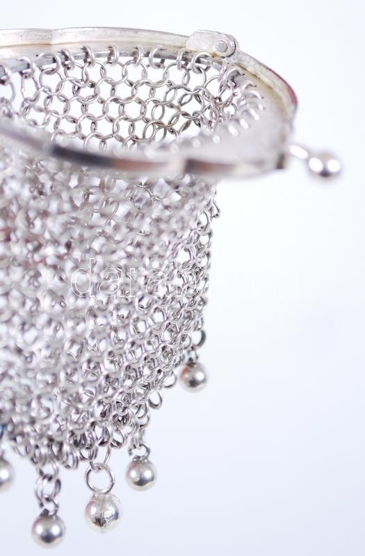 Beschreibung: 1872-1922 Ezüst (Ag) horgolt láncszemes aprópénztartó erszény bécsi behozatali jelzéssel /