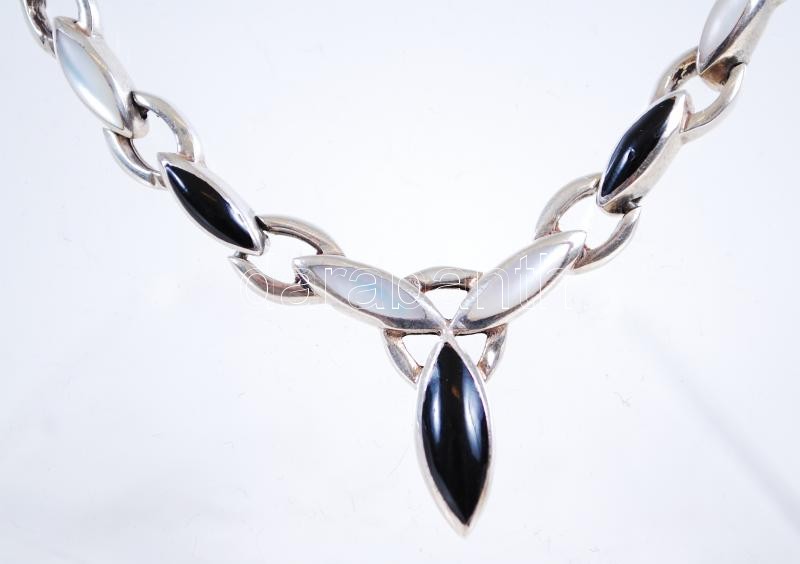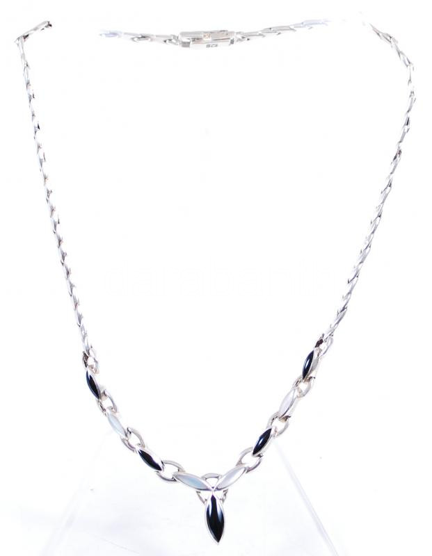Beschreibung: Ezüst (Ag) collier nyaklánc gyöngyház és zománc díszítéssel /