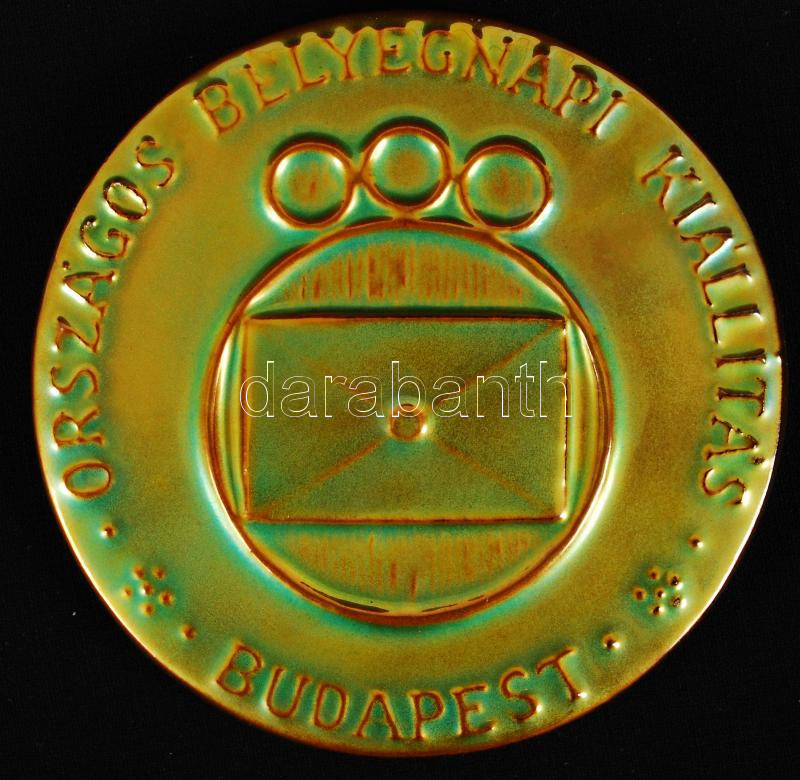 "Országos Bélyegnapi Kiállítás - Budapest" feliratú, modern, eozin máz... https://www.darabanth.com/de/179-Fernauktion/179.0/Andere-Sammelgebiete/Porzellan~400007/Orszagos-Belyegnapi-Kiallitas--Budapest-feliratu-modern-eozin-mazas-jelzett-Zsolnay-por~II636125