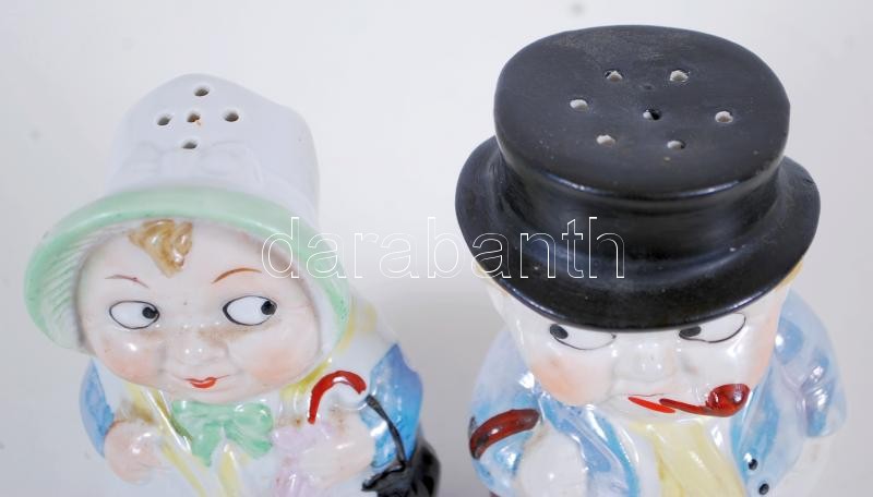 Beschreibung: Úr és hölgy formájú, kézzel festett porcelán só- és borsszóró /