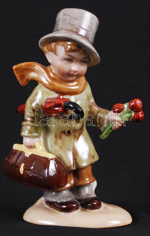 Beschreibung: Wagner & Apel Bertram, kisfiú a börönddel, kézzel festett, jelzett, hibátlan, m:14 cm / Boy with suitcase, porcelain in flawless condition