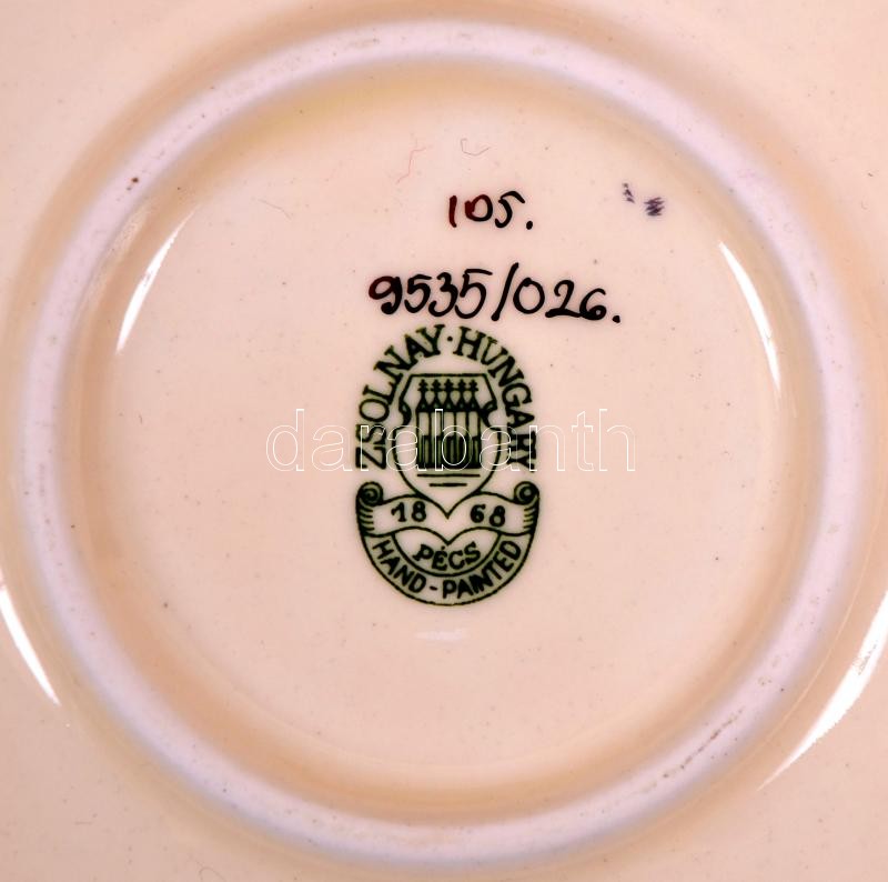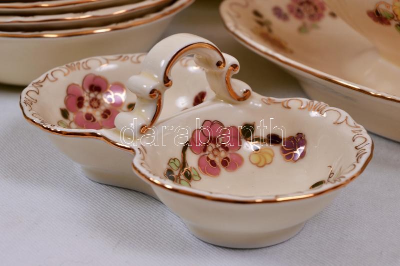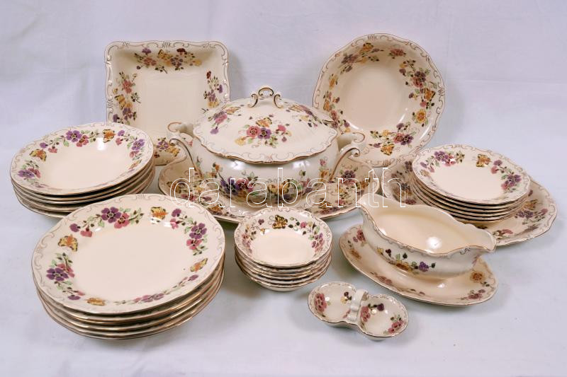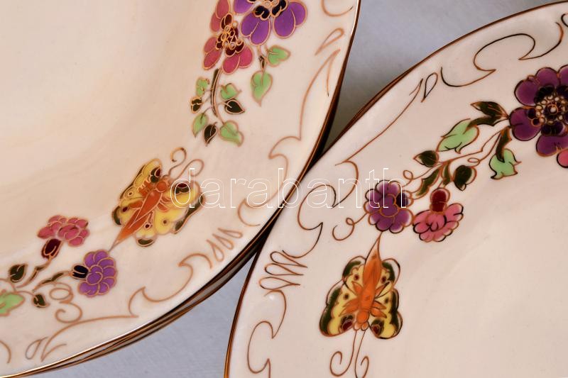 Beschreibung: Zsolnay pillangó mintás étkészlet, kézzel festett, hibátlan, jelzett, összesen: 25 db/ Zsolnay dinner set in flawless condition