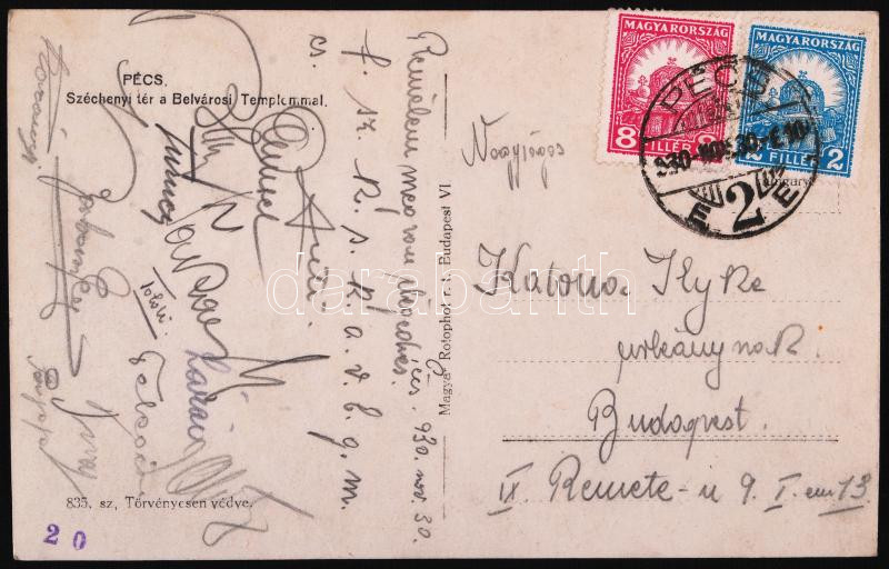 Beschreibung: 1930 Az FTC labdarúgócsapatának tagjai által aláírt képeslap