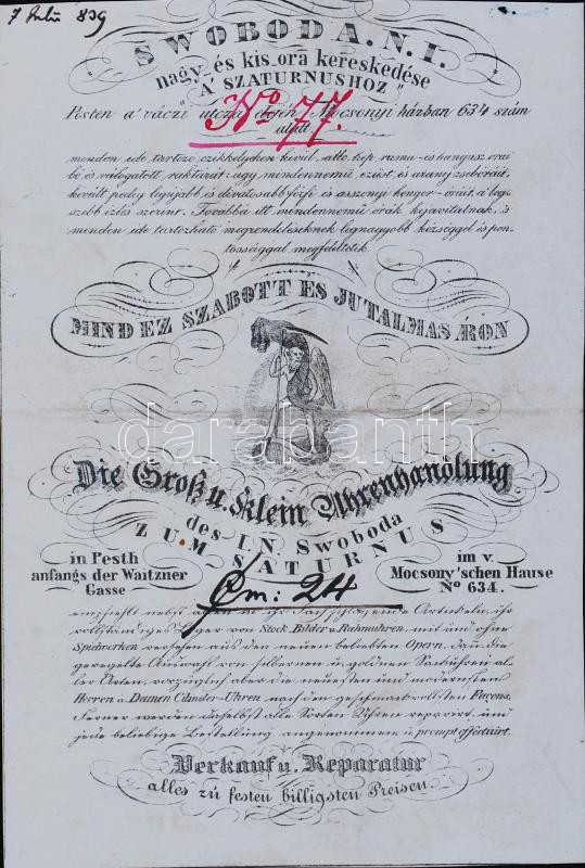 cca 1860 Budapest V. Swoboda órakereskedés a Saturnushoz reklámnyomtat... https://www.darabanth.com/de/179-Fernauktion/179.0/Andere-Sammelgebiete/Werbungen~600017/cca-1860-Budapest-V-Swoboda-orakereskedes-a-Saturnushoz-reklamnyomtatvany-szamlakent-felhaszn~II636728