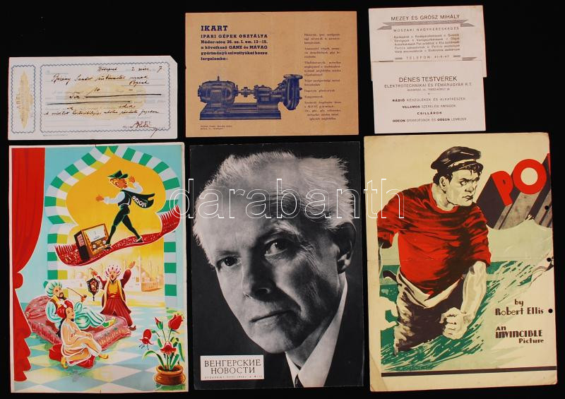 cca 1920-1945 21 reklám nyomtatvány vegyes témában https://www.darabanth.com/de/179-Fernauktion/179.0/Andere-Sammelgebiete/Werbungen~600017/cca-1920-1945-21-reklam-nyomtatvany-vegyes-temaban~II635959