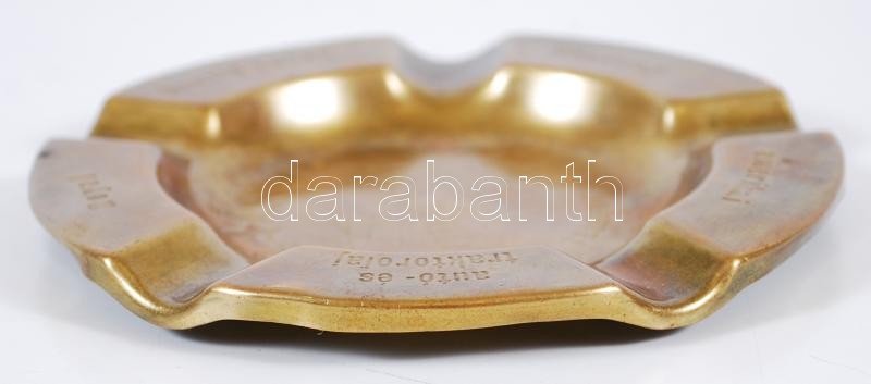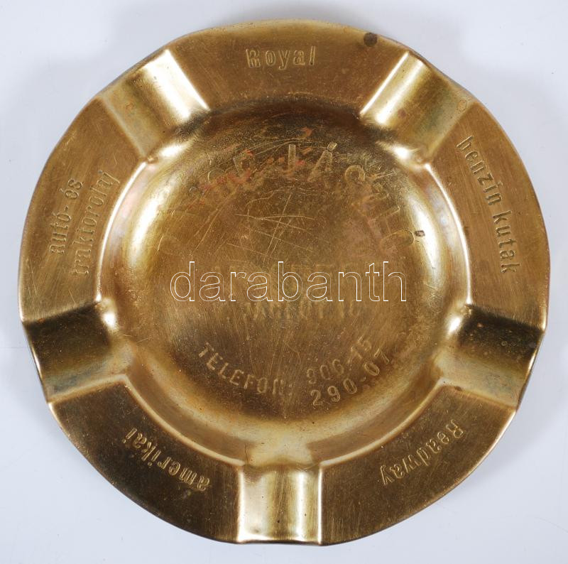 Beschreibung: cca 1940 "Pajor László Budapest V. Váci út 10. - Royal - benzin kutak - Readway - amerikai - autó- és traktorolaj" feliratú, promóciós réz hamutálca