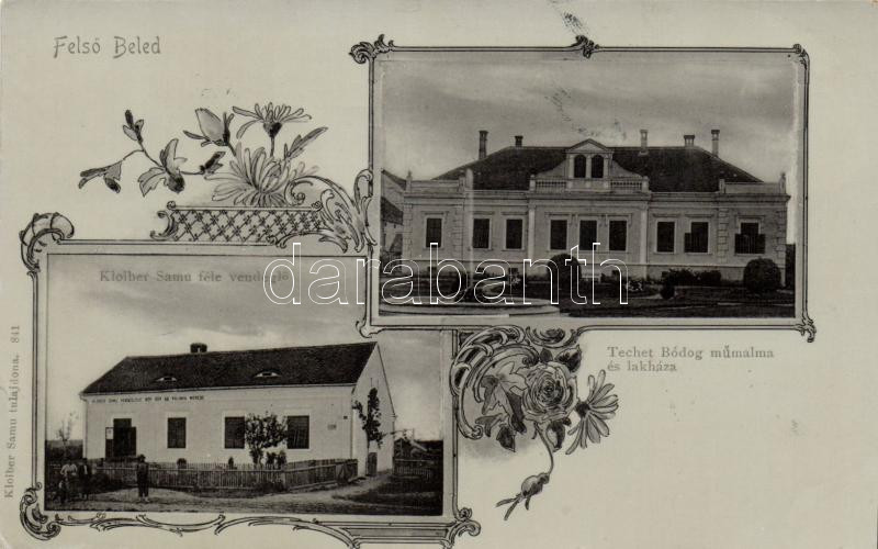 Felsőbeled; the restaurant of Samu Kloiber, the mill of Bódog Techet https://www.darabanth.com/de/179-Fernauktion/179.0/Ansichtskarten/Burgenland~600012/Felsobeled-the-restaurant-of-Samu-Kloiber-the-mill-of-Bodog-Techet~II634765