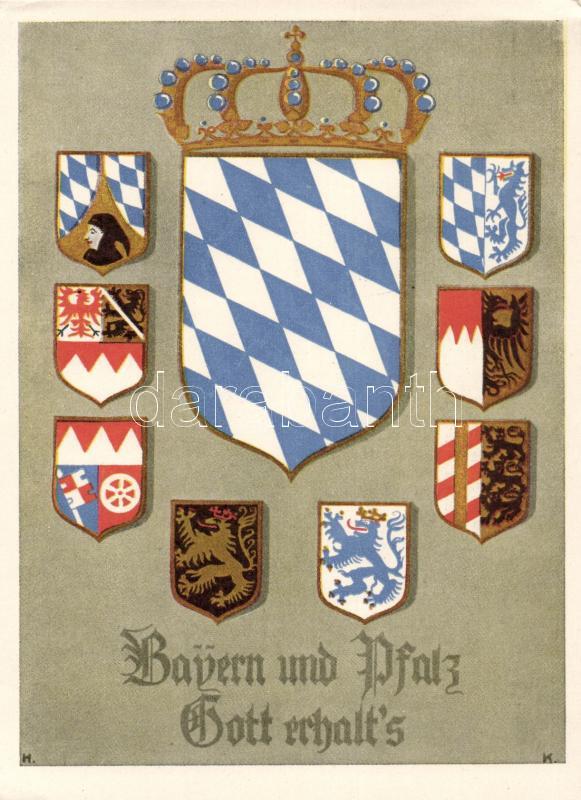 Bayern, Pfalz, coat of arms, patriotic postcard https://www.darabanth.com/de/179-Fernauktion/179.0/Ansichtskarten/Flaggen-Wappen~600093/Bayern-Pfalz-coat-of-arms-patriotic-postcard~II632730