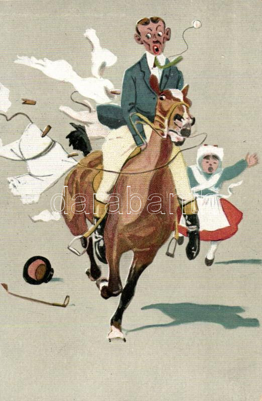 Horse rider and clothesline, humour https://www.darabanth.com/de/179-Fernauktion/179.0/Ansichtskarten/Humor~600063/Horse-rider-and-clothesline-humour~II634836
