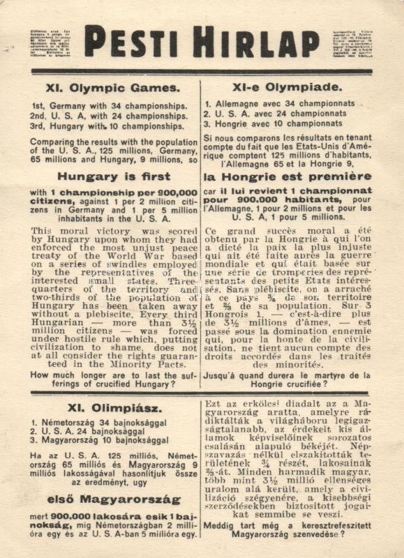 Beschreibung: Justice for Hungary, Pesti Hírlap, Olympic Games victories