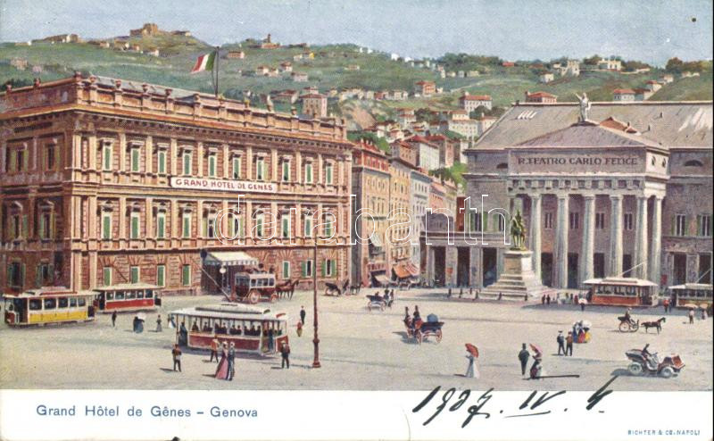 Beschreibung: Genova Grand Hotel, theater, trams (EK)