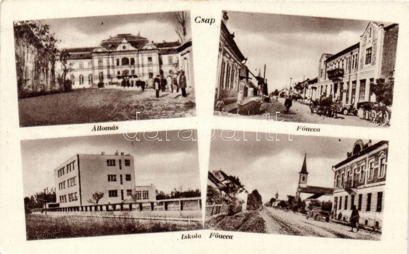 Csap railway station, Main street, school https://www.darabanth.com/de/179-Fernauktion/179.0/Ansichtskarten/Karpatenukraine~600009/Csap-railway-station-Main-street-school~II630890