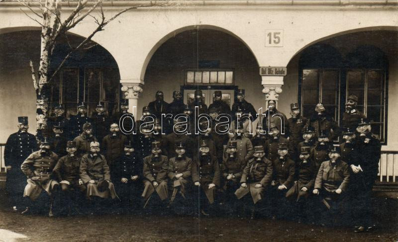 1918 Altiszti iskola tisztikara gázálarcban, csoport photo https://www.darabanth.com/de/179-Fernauktion/179.0/Ansichtskarten/Militaria~600067/1918-Altiszti-iskola-tisztikara-gazalarcban-csoport-photo~II632874