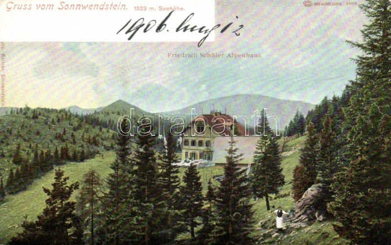 Sonnwendstein with the Friedrich Schüler Alpenhaus https://www.darabanth.com/de/179-Fernauktion/179.0/Ansichtskarten/Osterreich~600019/Sonnwendstein-with-the-Friedrich-Schuler-Alpenhaus~II632023