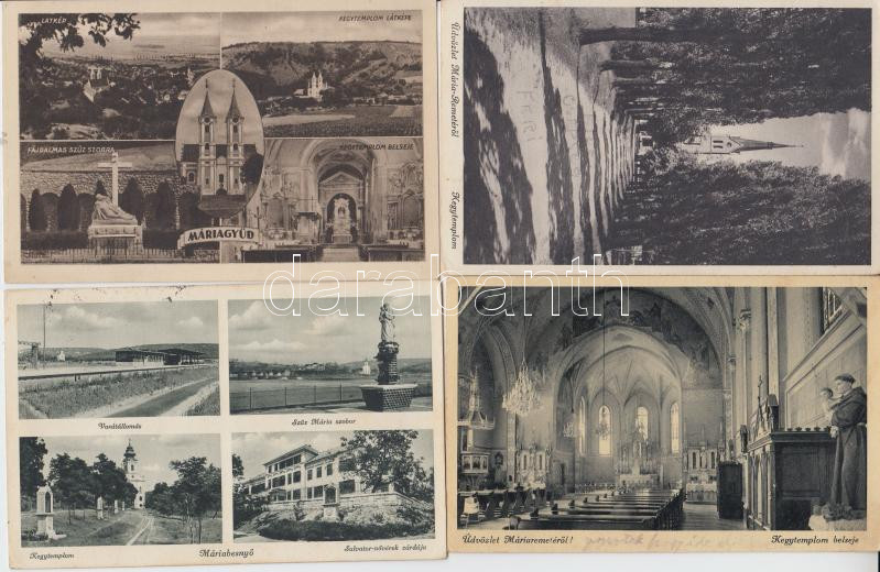 Beschreibung: 10 db régi magyar képeslap Szent Máriáról elnevezett településekről (Máriabesnyő, Máriaremete, Máriagyüd)