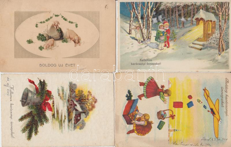 13 db régi újévi és karácsonyi üdvözlőlap, benne több litho és egy dom... https://www.darabanth.com/de/179-Fernauktion/179.0/Ansichtskarten/Postkartensammlungen-Lose~600002/13-db-regi-ujevi-es-karacsonyi-udvozlolap-benne-tobb-litho-es-egy-dombornyomott-lap~II630336