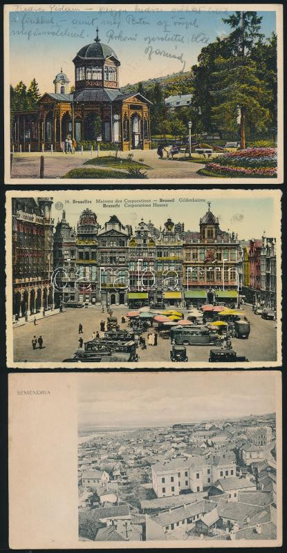 Beschreibung: 21 db régi nyugat- és észak-európai városképes lap, köztük két felvidéki (Fenyőháza, Bártfa) és egy vajdasági (Szendrő)