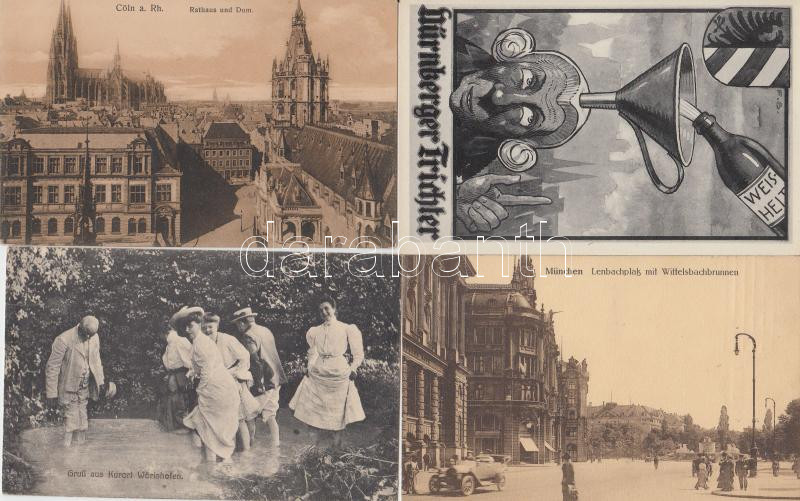 Beschreibung: 9 db régi, német városképes lap, benne egy "nürnbergi tölcsér" humoros lap / 9 German postcards, between them a "Nuremberg Funnel" humorous postcard