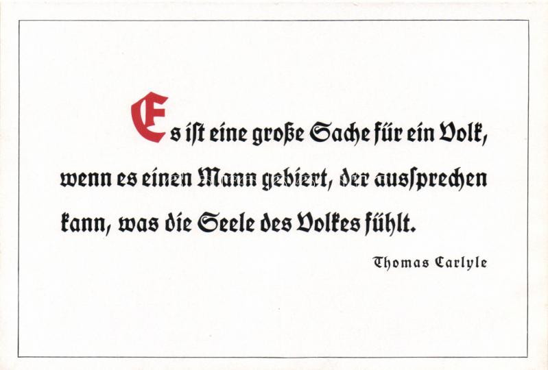 Thomas Carlyle quote, German propaganda https://www.darabanth.com/de/179-Fernauktion/179.0/Ansichtskarten/Propaganda~600078/Thomas-Carlyle-quote-German-propaganda~II632710