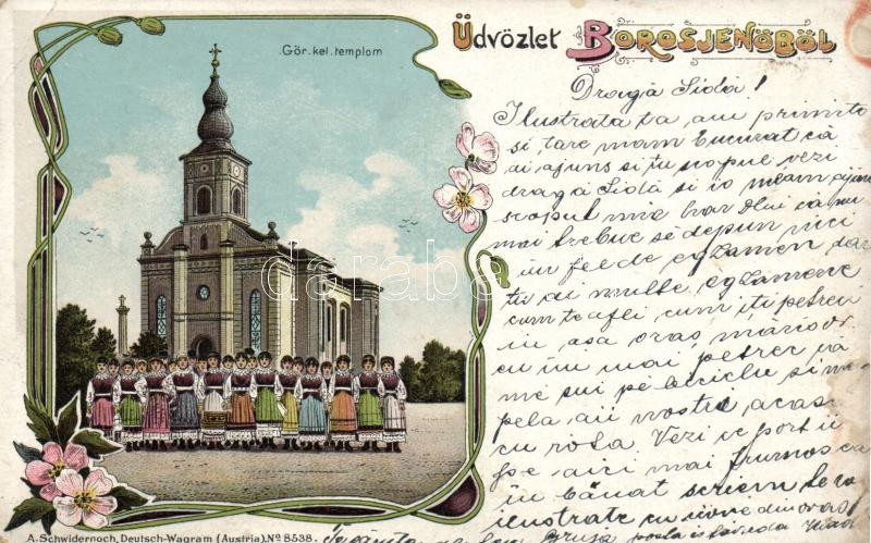 Borosjenő Greek Catholic church litho (EK) https://www.darabanth.com/de/179-Fernauktion/179.0/Ansichtskarten/Siebenburgen~600007/Borosjeno-Greek-Catholic-church-litho-EK~II634424