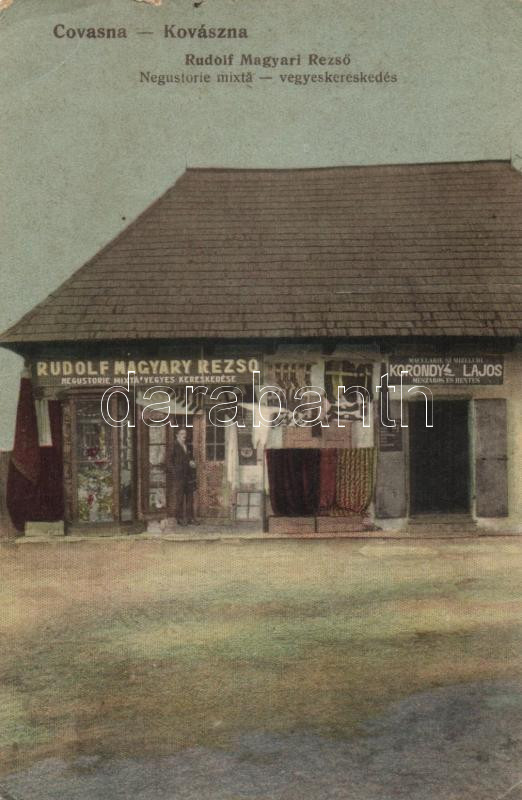 Kovászna Rudolf Magyari Rezső vegyeskereskedése és Korondy Lajos mészá... https://www.darabanth.com/de/179-Fernauktion/179.0/Ansichtskarten/Siebenburgen~600007/Kovaszna-Rudolf-Magyari-Rezso-vegyeskereskedese-es-Korondy-Lajos-meszarosuzlete-shops-EB~II634352