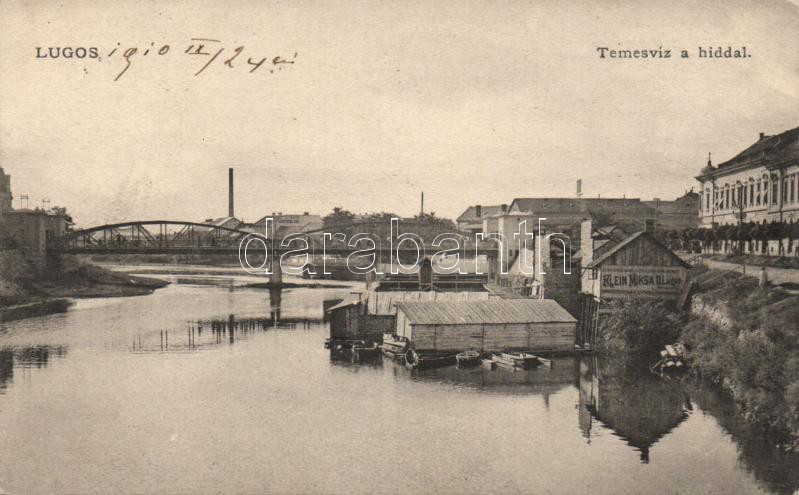 Lugos Temes riverside with bridge, the shop of Miksa Klein https://www.darabanth.com/de/179-Fernauktion/179.0/Ansichtskarten/Siebenburgen~600007/Lugos-Temes-riverside-with-bridge-the-shop-of-Miksa-Klein~II632864