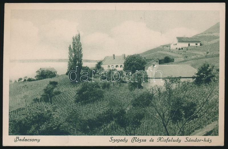 Badacsony Szegedy Róza és Kisfaludy Sándor ház https://www.darabanth.com/de/179-Fernauktion/179.0/Ansichtskarten/Ungarn~600006/Badacsony-Szegedy-Roza-es-Kisfaludy-Sandor-haz~II631365