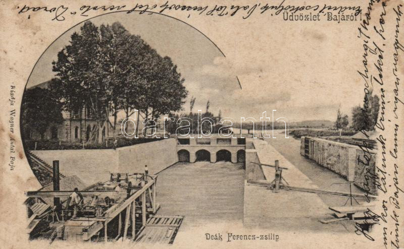 Baja Deák Ferenc zsilip (fl) https://www.darabanth.com/de/179-Fernauktion/179.0/Ansichtskarten/Ungarn~600006/Baja-Deak-Ferenc-zsilip-fl~II633924