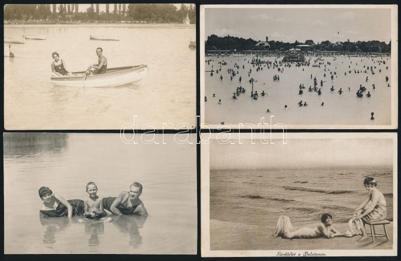 Beschreibung: Balaton strandélet 4 db régi képeslap, benne kettő fotó
