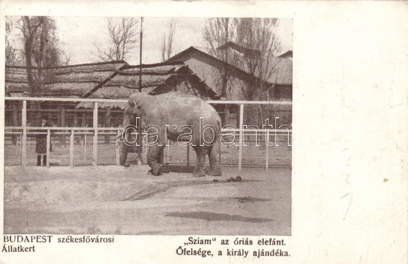 Budapest XIV. Állatkert; Sziam, az óriás elefánt https://www.darabanth.com/de/179-Fernauktion/179.0/Ansichtskarten/Ungarn~600006/Budapest-XIV-Allatkert-Sziam-az-orias-elefant~II630876